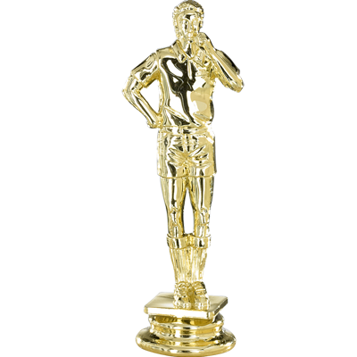 TROPHÉE 3 Hauteurs : 20cm / 22cm / 24cm - Matière du trophée : Bois bicolore - Matière du socle : Bois vernis - Sujet NJ en résine, finition or et argent