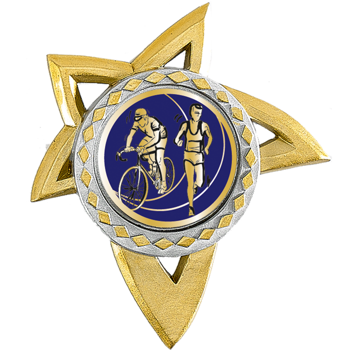 TROPHÉE – 3 Hauteurs : 20cm / 22cm / 24cm - Matière du trophée : Bois bicolore - Matière du socle : Bois vernis - Sujet NJ en résine, finition or et argent