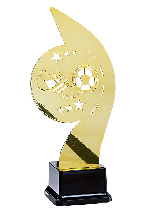 TROPHÉE - Hauteur : 82 cm - Matière des Colonnes et des pieds : ABS métallisé - Matière du ballon : Métal - Matière des sujets : ABS métallisé - Base haute et basse : Bois vernis